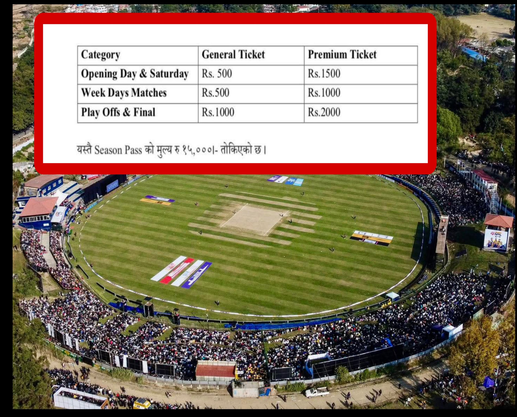 एनपीएलका लागि क्यानले तोक्यो टिकट मूल्य
