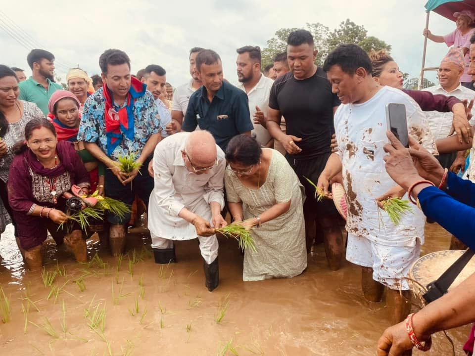 चितवनमा धान रोप्दै केपी शर्मा ओली (फोटो\भिडियो)