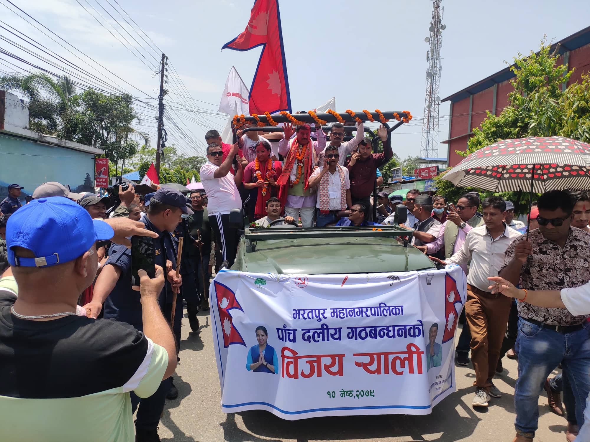 भरतपुरमा मेयर रेनु दाहाल र उपमेयर चित्रसेन अधिकारीको विजय जुलुस (फोटो/भिडियो)